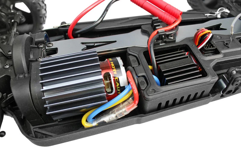 - • 16T brushed RC550 electric motor, Waterproof 40A brushed ESC, Waterproof high torque steering servo, 2.4GHz radio system.