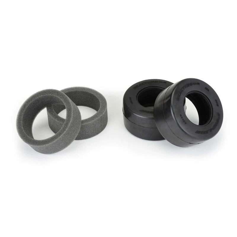 This is a pair of Reaction+ HP Wide SC Belted Drag Racing Tires. Pro-Line is proud to bring the next generation of drag racing tires to the no-prep scene with the new Reaction+ HP Wide SC BELTED tires! The Reaction+ is about 20% wider than the original Reaction HP tire for massively improved grip off the line, which can mean the difference between victory or defeat. Once you reach full throttle, you can have 100% confidence in the stability of this tire because it is belted with an extra wide belt that wraps further into the corners of the tire to prevent any expansion. The Reaction+ tire is so wide that it will not fit standard width SC wheels, so Pro-Line engineers developed a new Wide SC wheel specifically for use with the Reaction+ HP: the Showtime+ Wide SC Wheel (PRO279403)! Just like the original, the Reaction+ is made from Pro-Line’s soft S3 compound, which is a proven winner taking the win and the top 4 spots at the 2021 King of the Streets drag race in Las Vegas. Just like all of Pro-Line’s tires, they are proudly Made in the USA! Get maximum grip and stability so you can be faster than your racing buddies with Pro-Line’s all-new Reaction+ HP Wide Drag Slick SC tires!