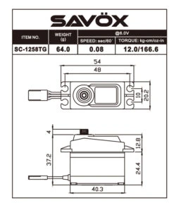 Savox SAVSC1258TG-BE Black Edition Standard Size Coreless Digital Servo 0.08sec / 166oz @ 6V