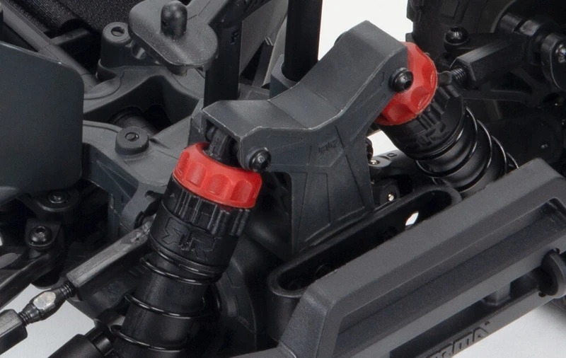 The self-bleeding, oil-filled shocks, now with silicone O-rings, use a tried and tested, coil-over design for simple maintenance and amazing handling. Their innovative rod-end has a molded-in spring perch for extra toughness. Extended height dirt defenders and a close-fitting body limit the amount of dirt and debris that can get into the chassis tub. Front and rear bumpers offer defense against impacts.