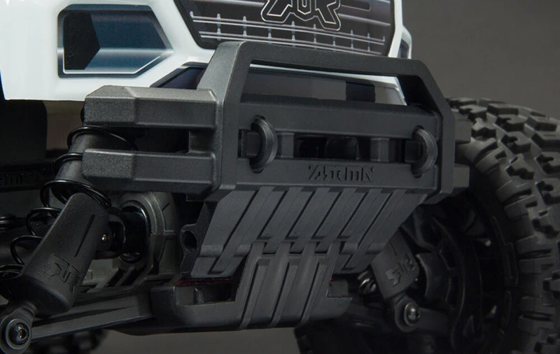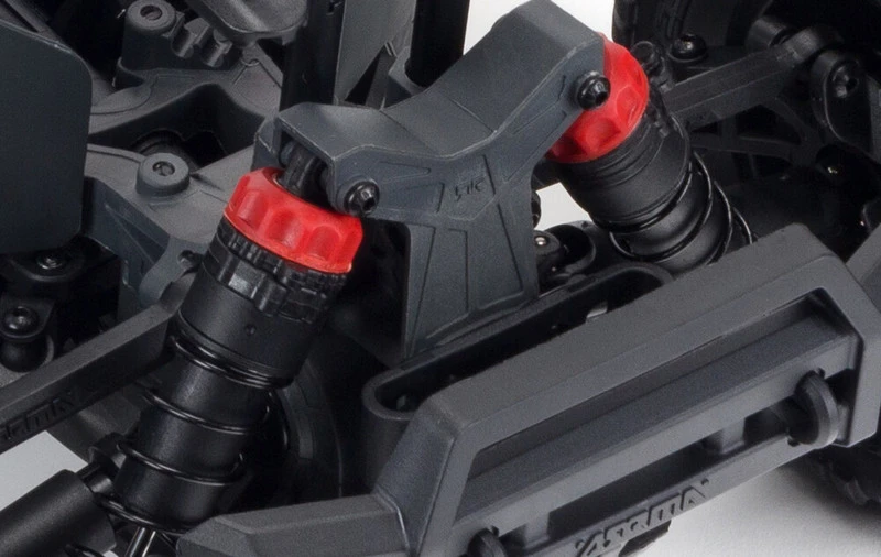 The self-bleeding, oil-filled shocks, now with silicone O-rings, use a tried and tested, coil-over design for simple maintenance and amazing handling. Their innovative rod-end has a molded-in spring perch for extra toughness. High chassis guards limit the amount of dirt and debris that can get into the chassis tub. Shock-absorbing loops keep the front and rear bumpers secured to the chassis, offering defense against heavy impacts.