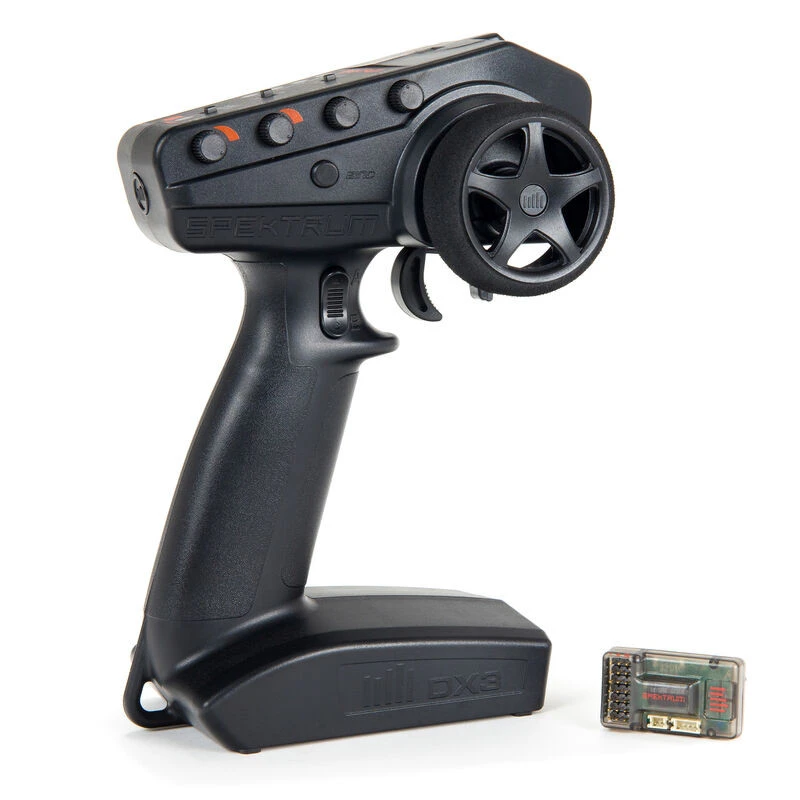 - Spektrum® 3-Channel DX3™ 2.4GHz DSMR® radio and SR6110AT Receiver with AVC® (Active Vehicle Control™)