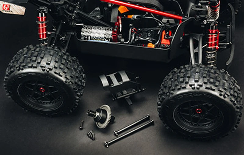 ARRMA® keeps your maintenance downtime to the minimum with an efficient, driver-friendly design. A new sliding mount allows quick, hassle-free motor access. The center diff is easy to reach and can now be removed by taking out just five bolts.