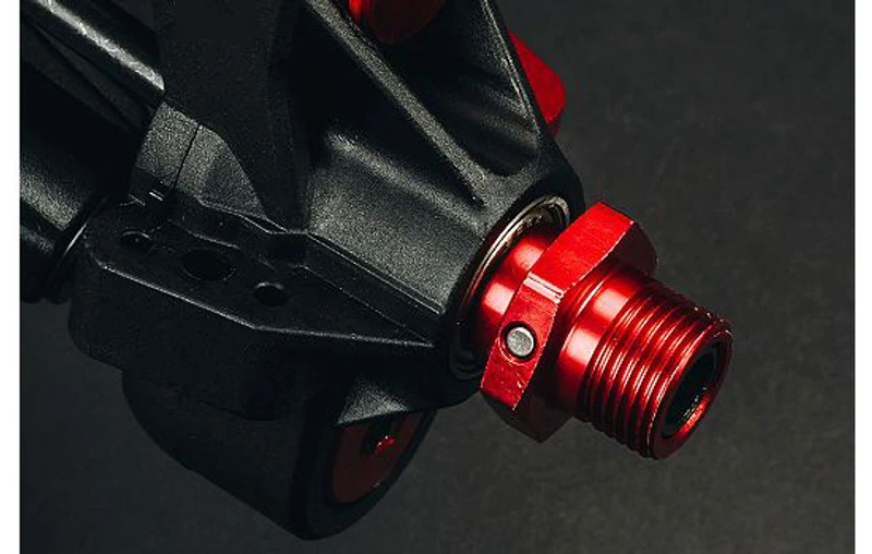 Anodized aluminum shock absorbers feature adjustable collars and shock cap protectors