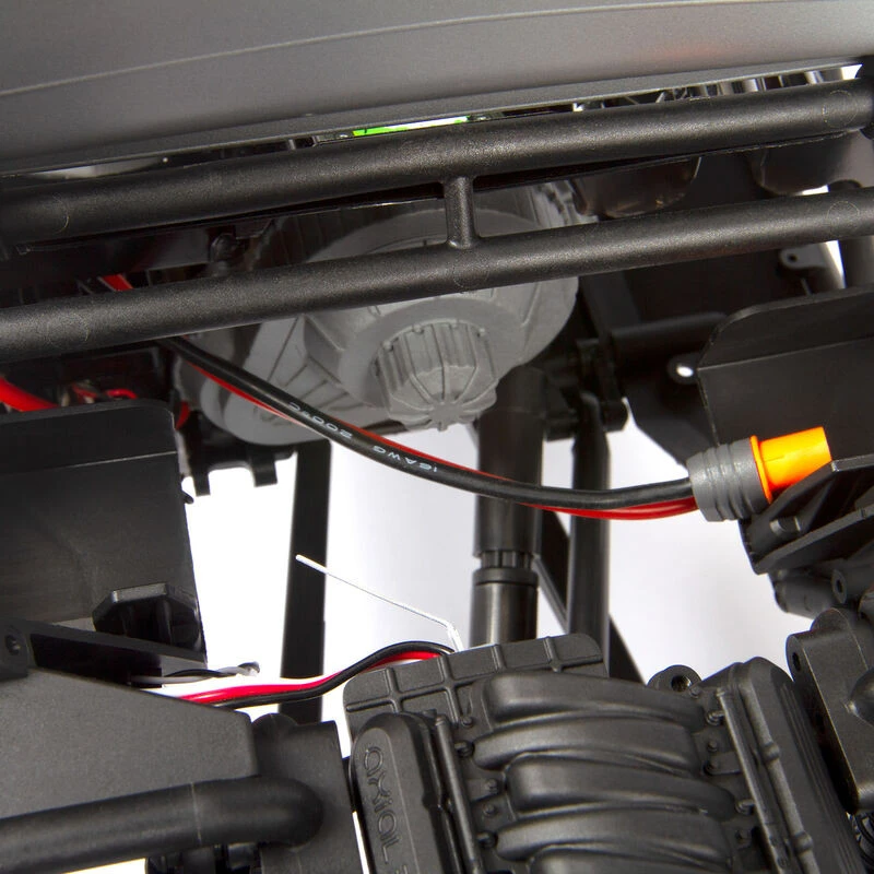 Molded inner fender wells help to reduce routine maintenance by keeping dirt and debris kicked up by the tires from entering the chassis. Plus, they’re another example of Axial ingenuity: the wells double as part of the battery tray and feature simulated cooling vents for added realism.