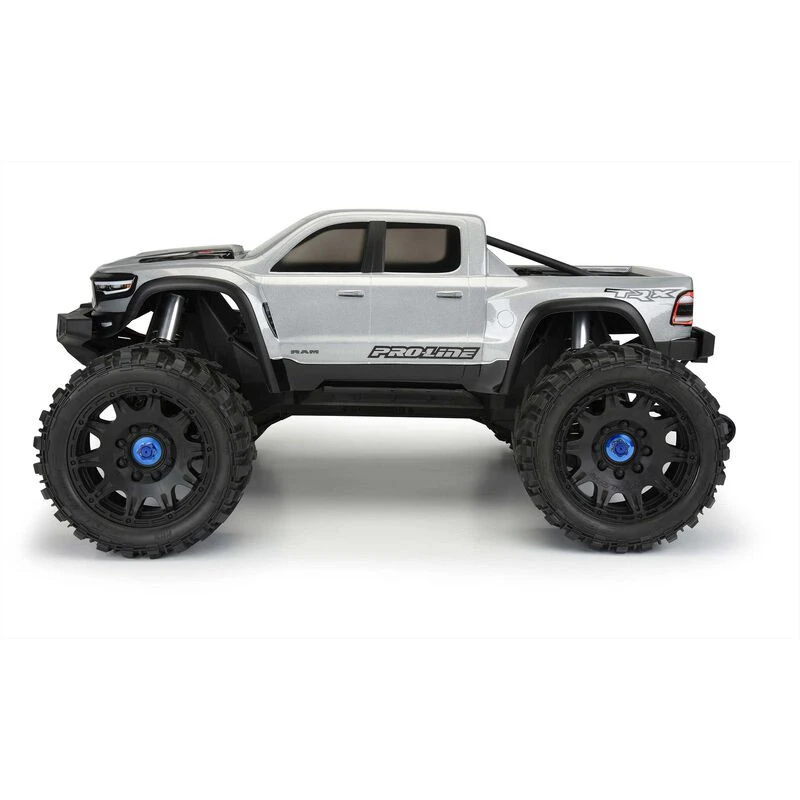 Pro-Line now has the ultimate licensed Ram body specifically made for the X-MAXX® – the 2021 Ram 1500 TRX! The just-released full-size 2021 Ram 1500 TRX is the most powerful production truck ever produced with over 700-horsepower and has an extreme off-road look that will separate your truck from the rest. Pro-Line has included all the aggressive scale detail into the body and sticker sheet for a highly detailed replica and it comes Pre-Cut to get you going faster. This body completely transforms your X-MAXX® into an even crazier Bash Machine and allows you to add a custom paint job! Give your X-MAXX® the tough off-road look it deserves with Pro-Line’s new 2021 Ram 1500 TRX body!