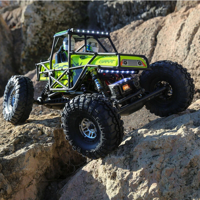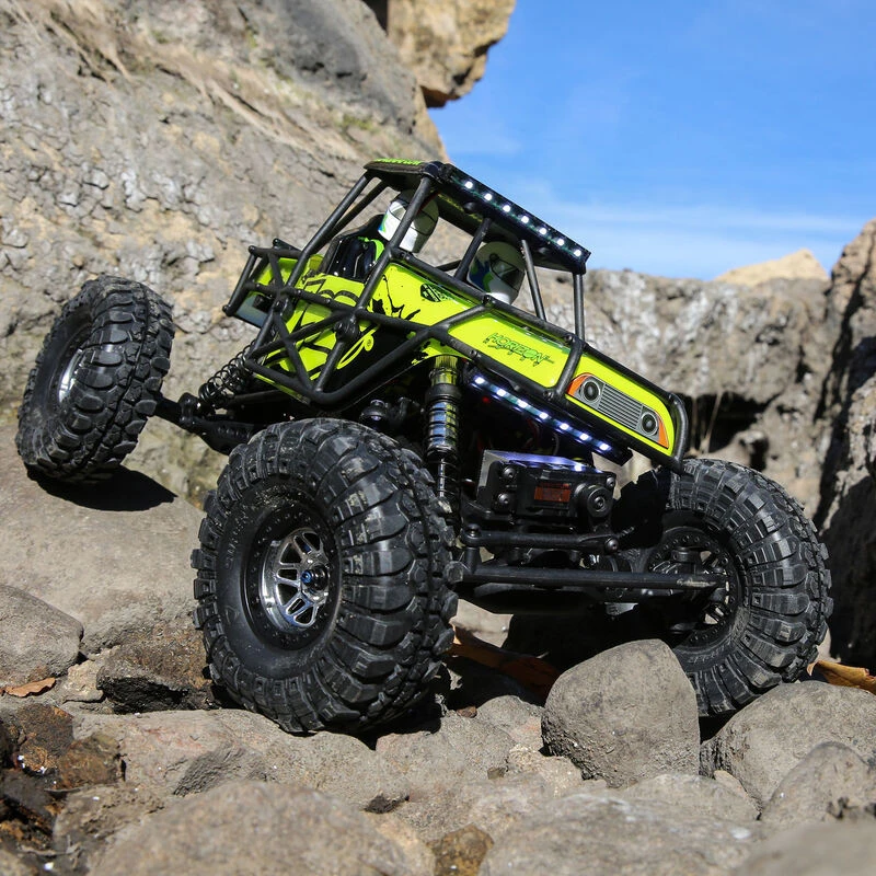 If you love scale crawling and night driving, the Losi® Night Crawler™ SE RTR will rock your world. It’s built on the proven Losi Night Crawler heritage, but offers more lights and a new Exoskeleton cage. The cage and body provide impressive scale details without compromising performance or durability. Additional front and rear rock lights will make it easier to see obstacles in your path and brighter LED light strips will further light the way. This crawler feels most at home on rocky terrain-the rougher, the better-and it doesn’t shy away from mud or water, either.