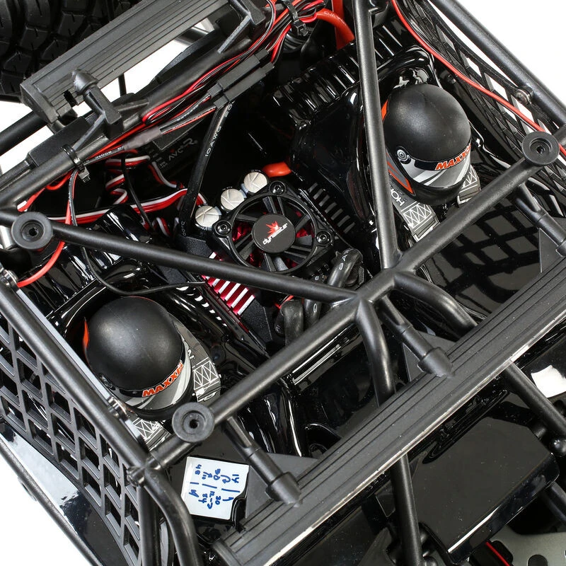 The vehicle comes equipped with a Dynamite® Fuze™ 750Kv brushless motor and a waterproof 160A ESC. This potent combination can handle 8S LiPo batteries (sold separately) and will allow you to hurtle across the landscape at speeds of up to 55+ mph.