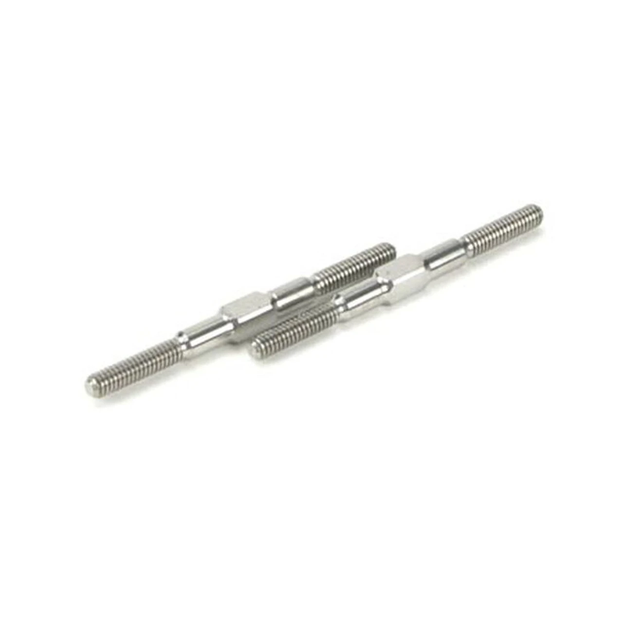 Team Losi now offers trick Titanium turnbuckles for their Mini-T® stadium truck. These precision-machined left/right threaded turnbuckles are just like those used on larger racing vehicles. The lightweight and extreme strength of Titanium is second only to the convenience of the left & right threads on either side that allows for quick and easy adjustment. These cool looking turnbuckles are used with the stock ball cups and are available in a complete set with an adjusting wrench(LOSB1230) or in pairs by size.