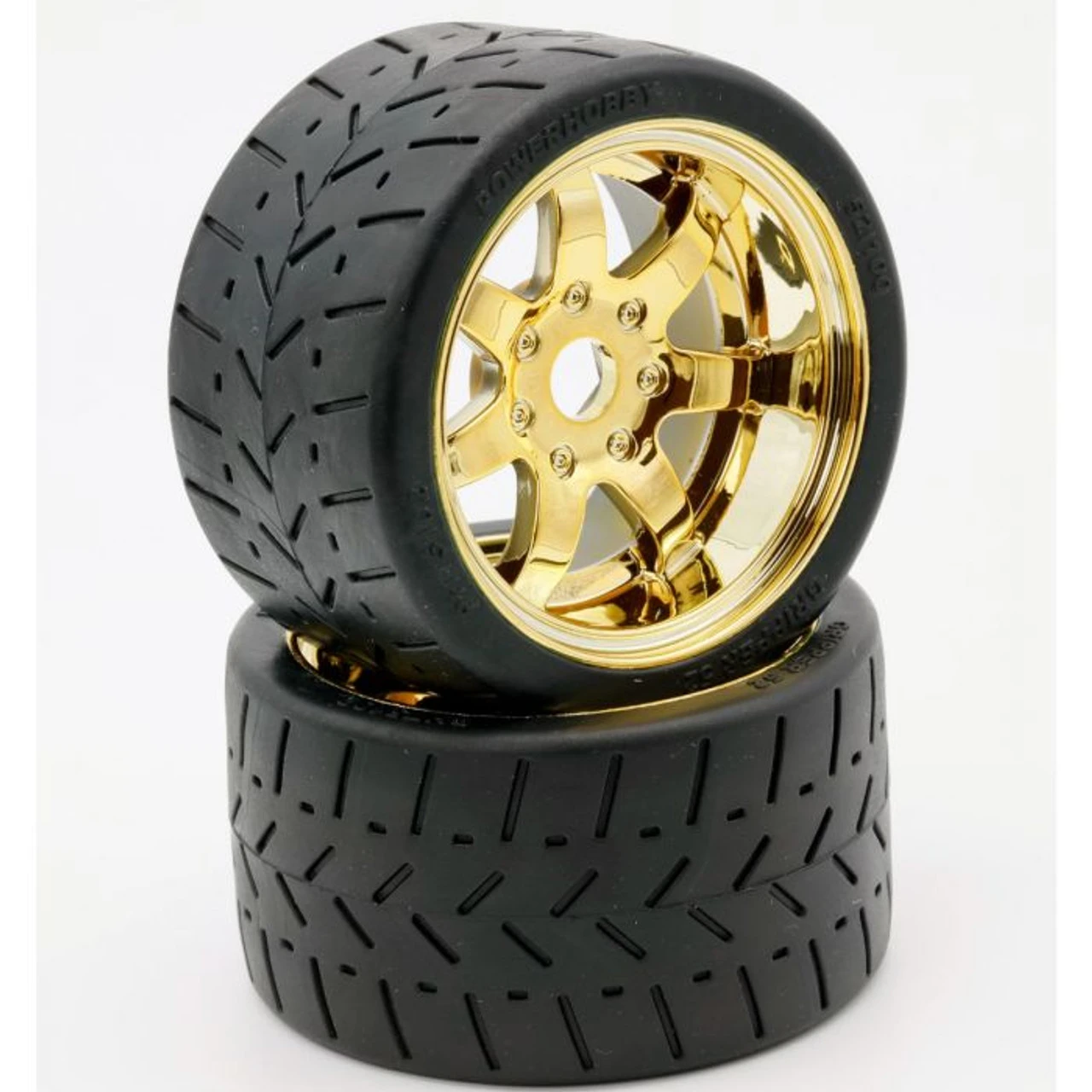 Powerhobby 1/8 Gripper 54/100 Belted Pre-Mounted Tires 17mm – Gold Wheels