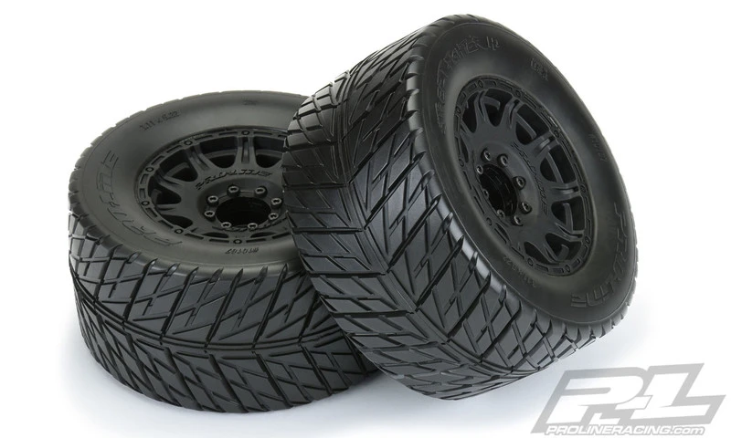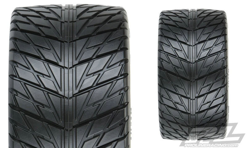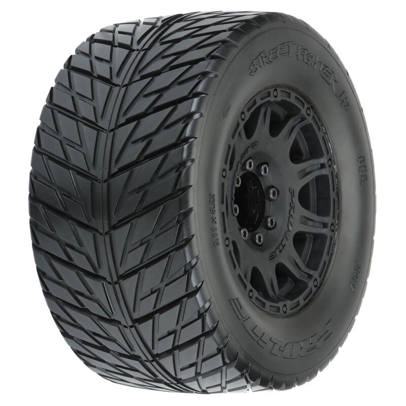 Pro-Line has developed the technology to mold a high-performance herringbone weave pattern belt inside of the Street Fighter HP tires, which will prevent the tire from ballooning or expanding during use. This will give you maximum control to put the power down, even at high speeds! The Street Fighter HP 3.8″ tires provide the incredible grip that you expect from Pro-Line due to the soft M2 compound and the aggressive tread grooves. Pro-Line also heard the calls for a tire size to fit the current generation of Monster Trucks, and the Street Fighter delivers at 3.11″ wide and 6.22″ tall. Just like all of Pro-Line’s tires, they are proudly Made in the USA! Get maximum grip and stability so you can be faster than your buddies with Pro-Line’s Street Fighter HP 3.8″ Monster Truck tires!