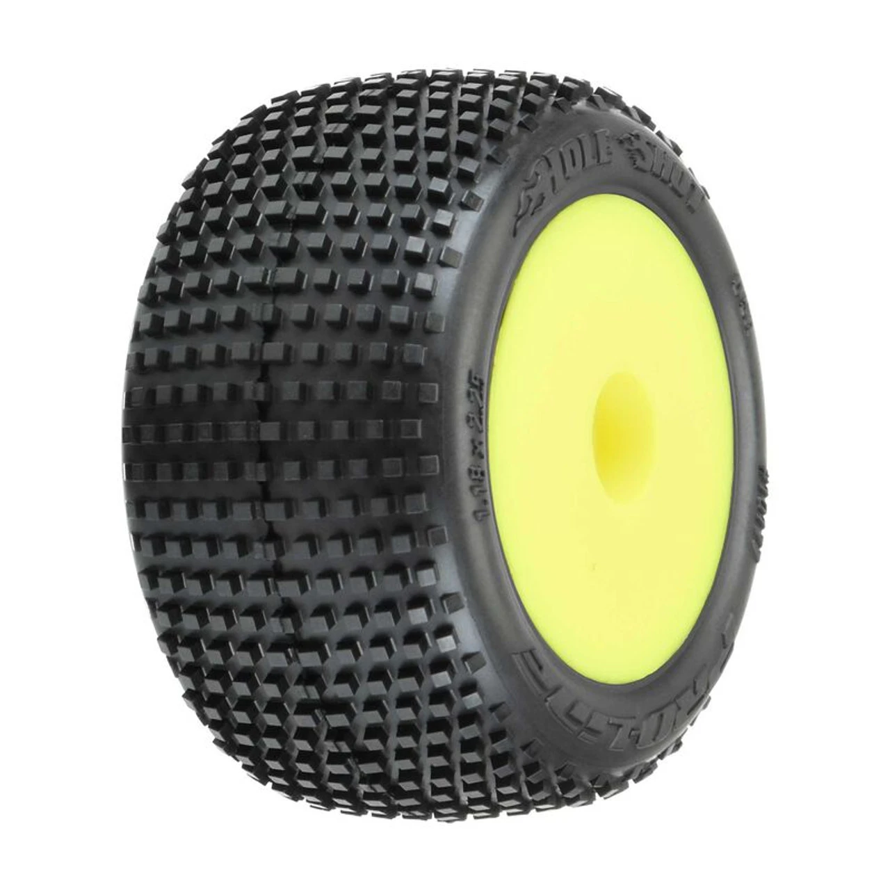 The Mini-T™ is back, and Pro-Line now has the perfect upgrade tire for your new mini-truck: The pre-mounted Hole Shot tire! The Hole Shot is the tire that everyone turns to when looking for an edge over the competition because it just works, everywhere. Period. The Hole Shot is renowned across the world as one of the most used race tires of all time. From World Championships to National Championships, Regional race events to club race events, the Hole Shot design has won just about every title imaginable. Pro-Line’s innovation team is proud to bring you the Hole Shot tire mounted on Yellow Wheels designed specifically for the new Mini-T™ 2.0 for maximum performance on a variety of surfaces. The unique mini-pin Hole Shot tire is made from our soft M3 compound and is made to fit directly onto the stock Mini-T™. Soft open cell foam is included for maximum grip. The Hole Shot is the new must-have tire for the Mini-T™ 2.0, so get them today!