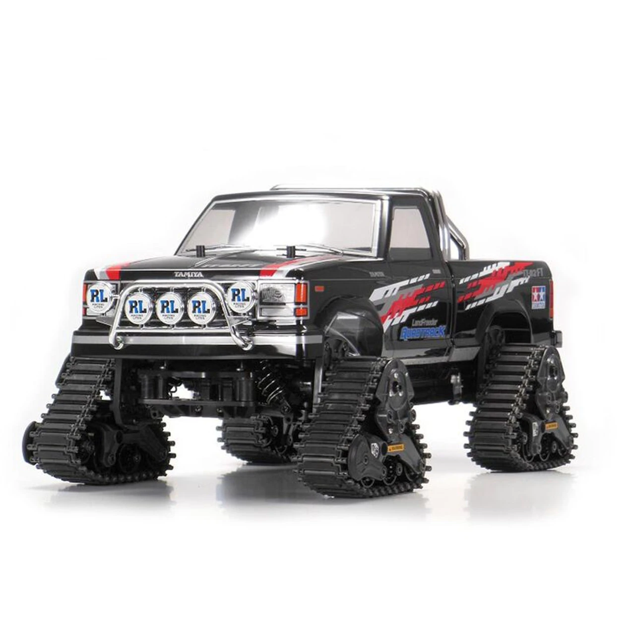 The Landfreeder Quadtrack is a twist on the fun world of Tamiya R/C. This kit uses a variant of the TT-02 chassis with three-sided track units in place of the wheels: the result is awesome traction that can be used to take on rough terrain. Furthermore, the polycarbonate truck body comes already pre-painted in Tamiya PS-5 black.
