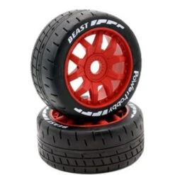 PHBPHT2401-SR Power Hobby – 1/8 GT Beast Belted Mounted Tires, Soft Compound, 17mm Red Wheels